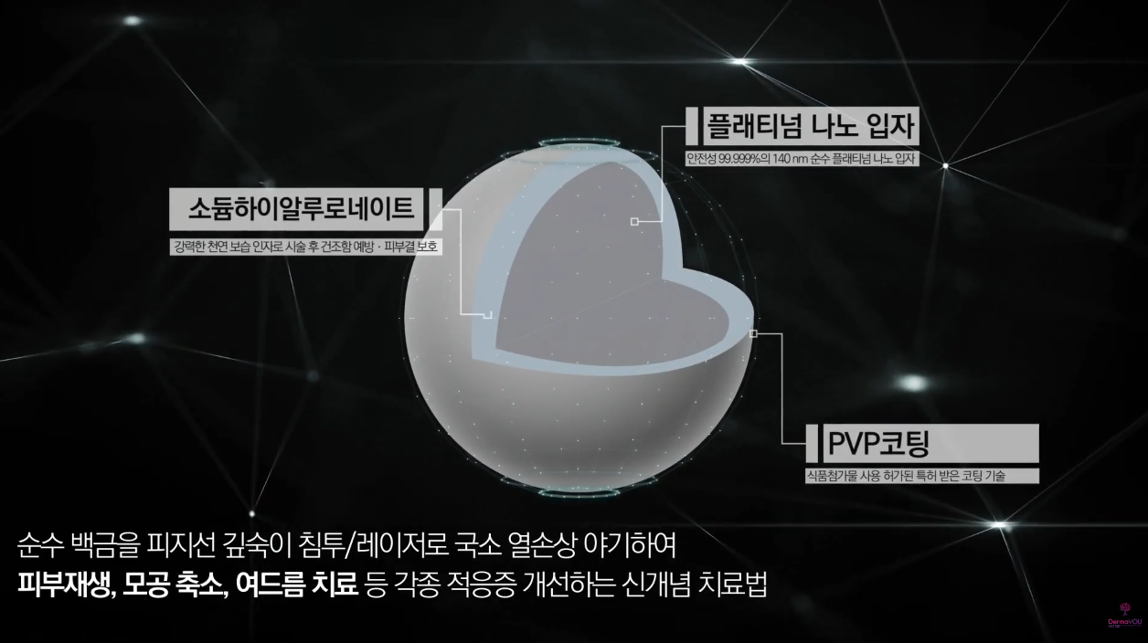 순수한 백금을 피부속에 침투시킨 뒤, 레이저로 열을 가해 피지선을 파괴.
